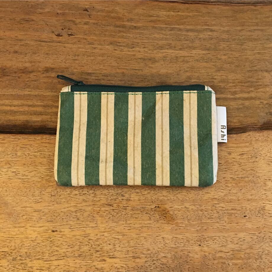 Ashi|亜紙 Flat Pouch S*Stripe Green 紙ポーチ ストライプ